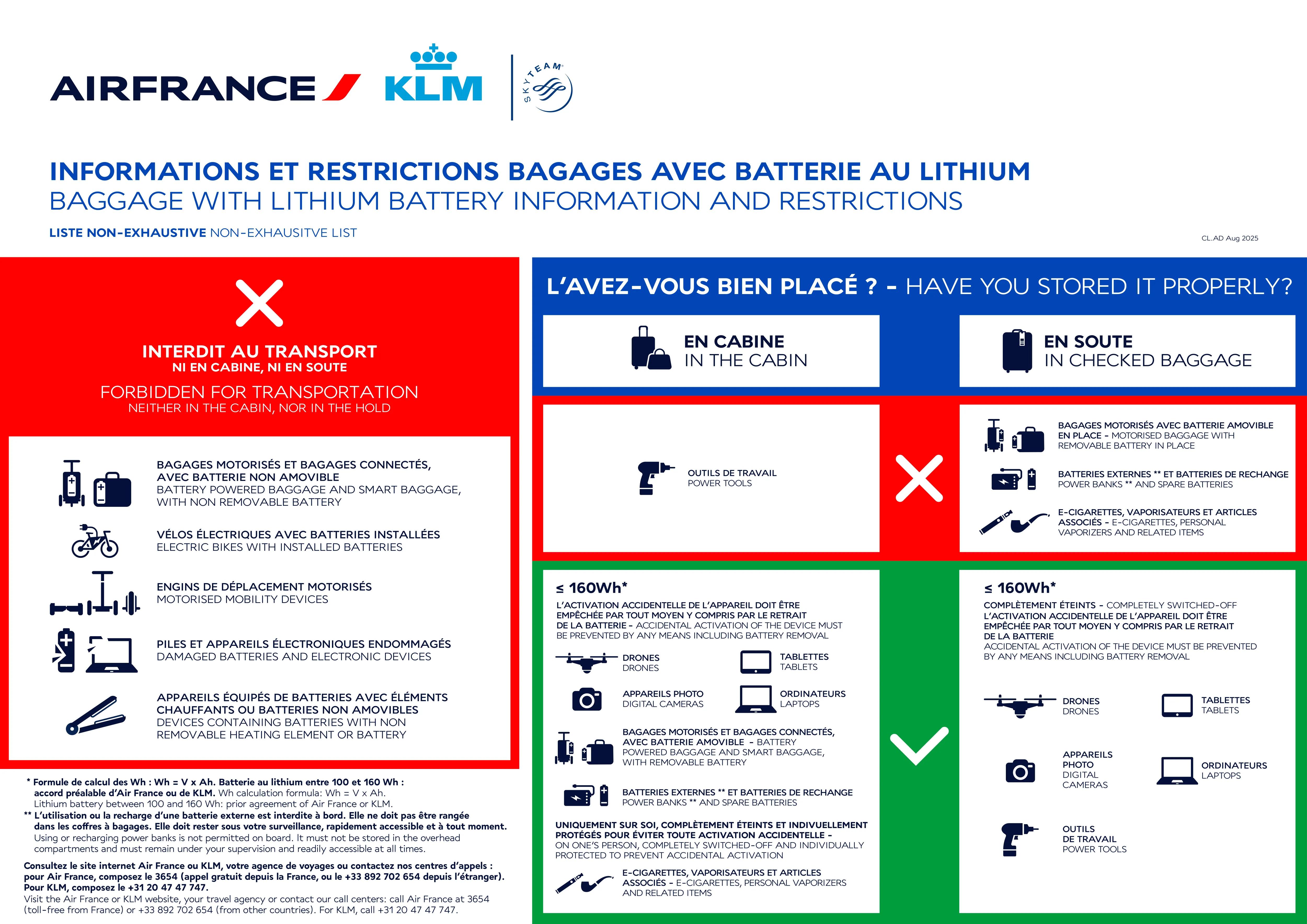 Pour des raisons de sécurité, les batteries externes (power banks) sont interdites dans les bagages en soute.